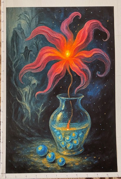 I start with a sketch. A memory. A question I can’t quite answer. Every piece begins with my own hands and a sense of wonder I’m chasing—and I use whatever tools will help me follow it through. That includes AI. Not as a shortcut, but as a brush I’m learning to guide.
